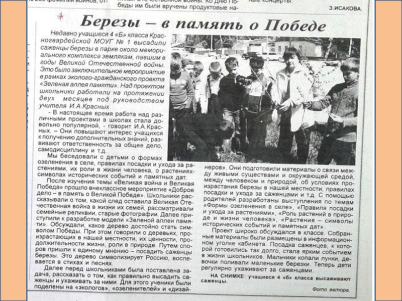 Эколого-патриотический проект «Зеленая аллея памяти»
