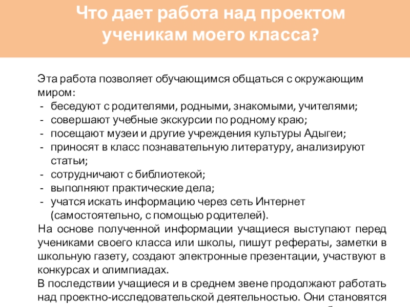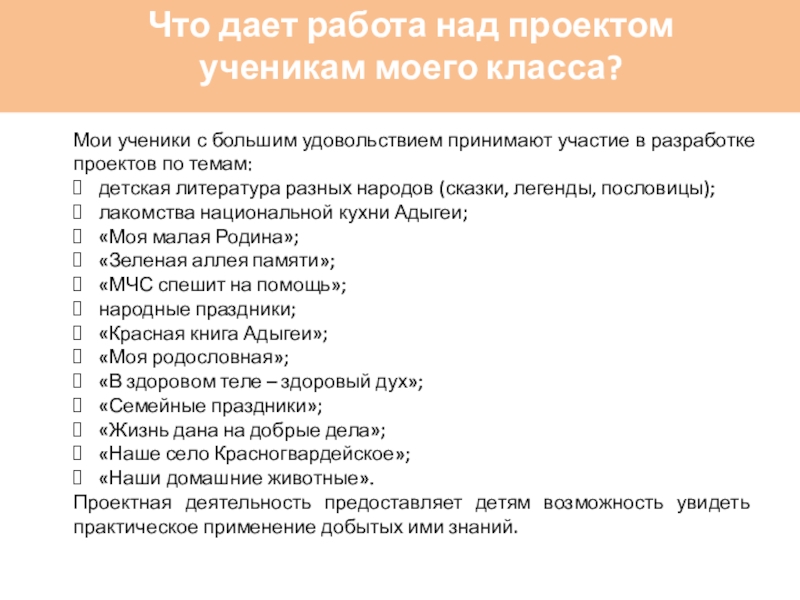 Слайд 23Что дает работа над проектом ученикам моего класса?