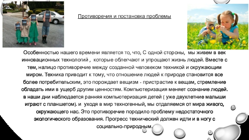 В наш компьютерно-электронный век возникла угроза экологической катастрофы: быстрыми темпами загрязняется окружающая среда, на грани вымирания находятся многие виды животных. в техногенный век формирование экологической культуры обретает особое значение