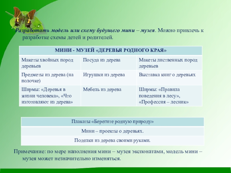 В начале необходимо определить тему музея, например мини – музей «Деревья нашего края».