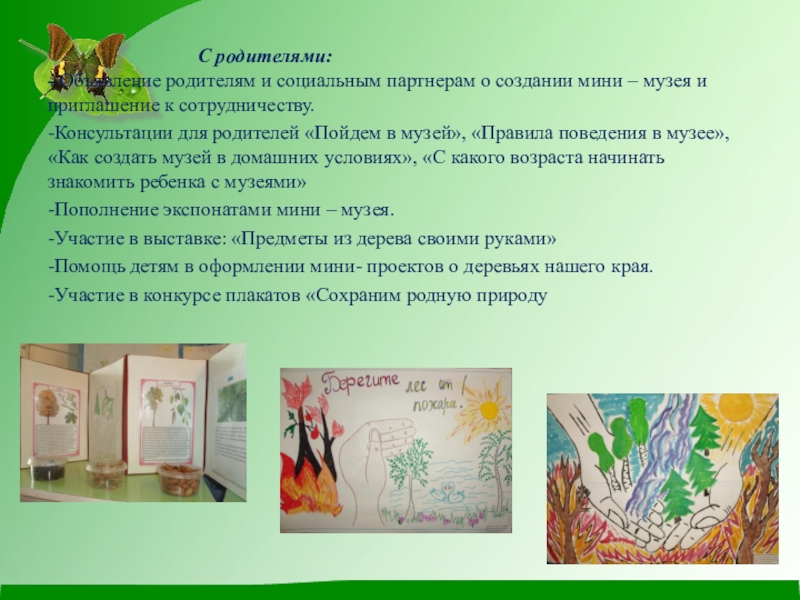 - Объявление родителям и социальным партнерам о создании мини – музея и приглашение к сотрудничеству.