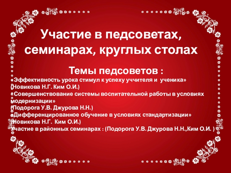 Слайд 9Участие в педсоветах, семинарах, круглых столах