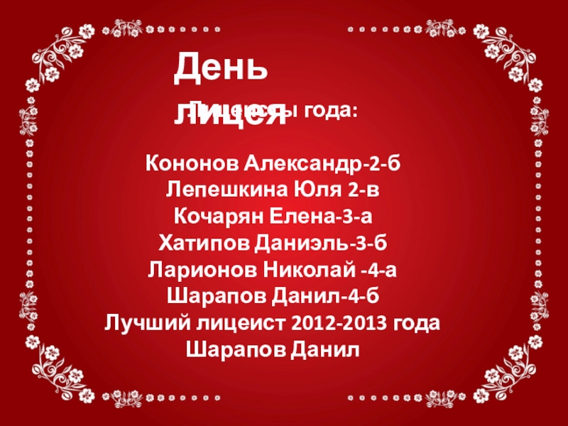 призеры районной олимпиады по русскому языку Гордиенко Вера(уч.Ким О.И.), Ларионов Николай (уч.Карабец С.И.)