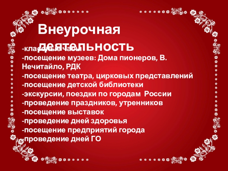 -посещение музеев: Дома пионеров, В.Нечитайло, РДК