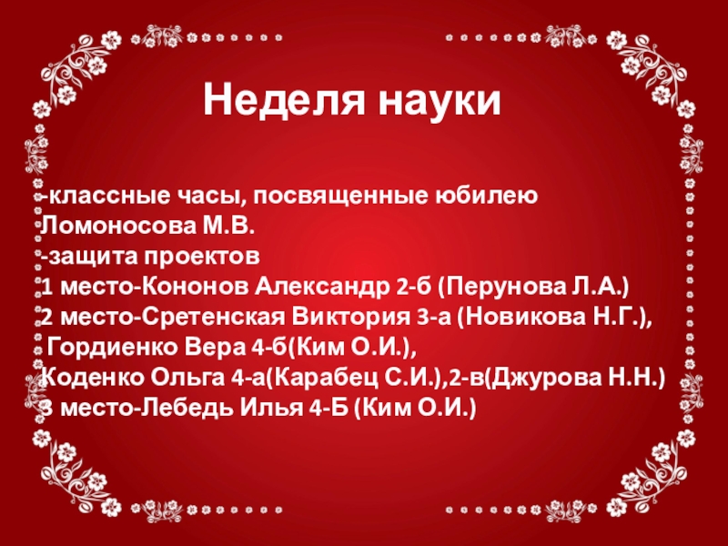 -классные часы, посвященные юбилею Ломоносова М.В.