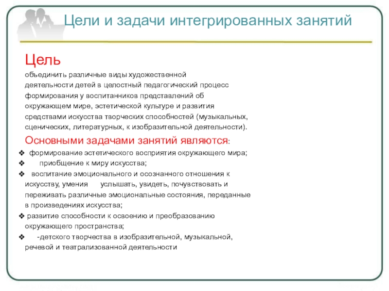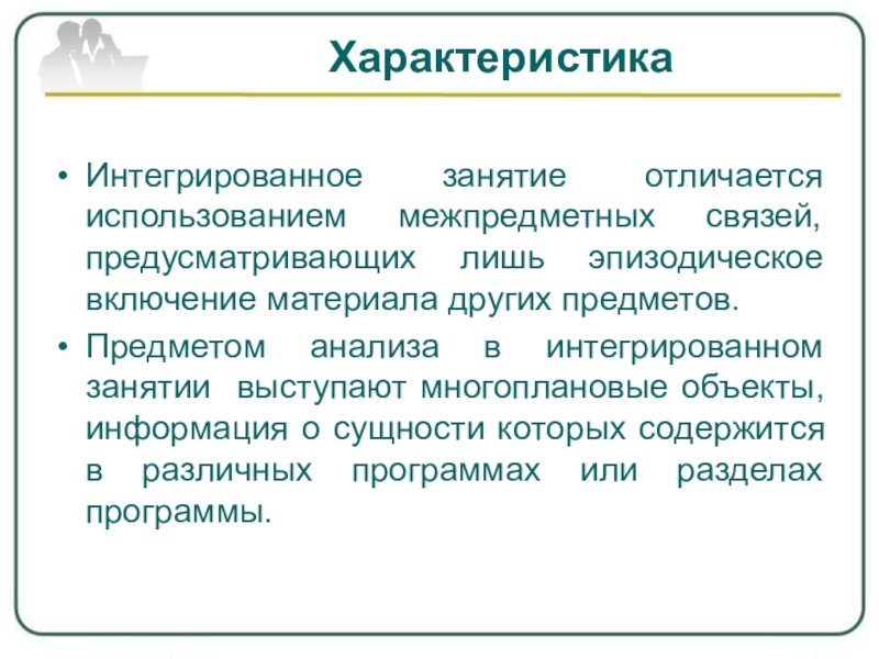 Интегрированное занятие отличается использованием межпредметных связей, предусматривающих лишь эпизодическое