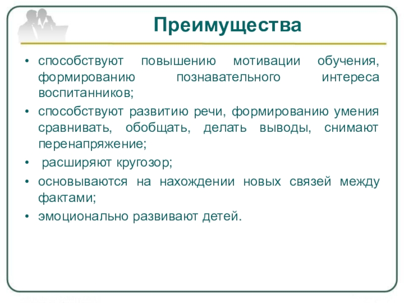 способствуют повышению мотивации обучения, формированию познавательного интереса воспитанников;