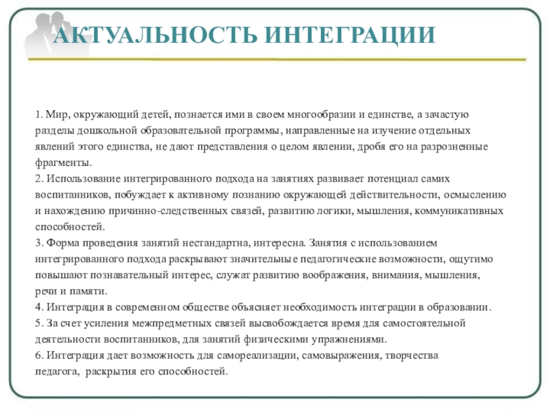 интегрированного подхода раскрывают значительные педагогические возможности, ощутимо