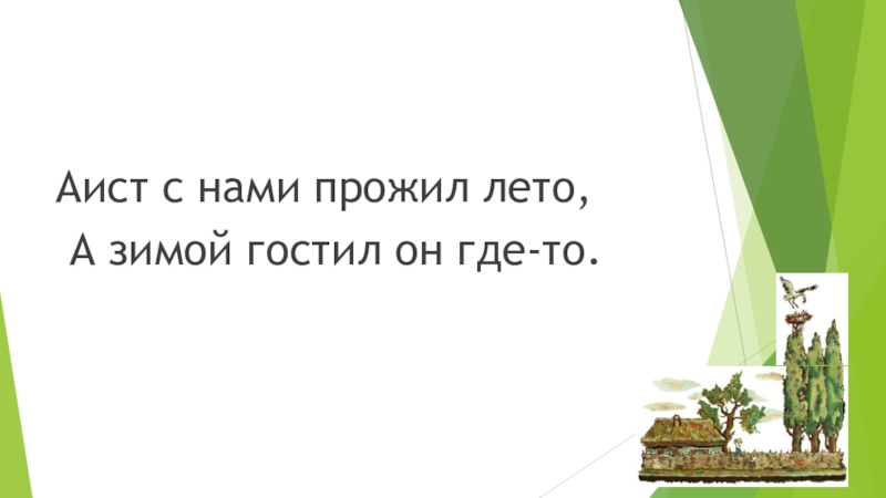 Аист с нами прожил лето, А зимой гостил он где-то.