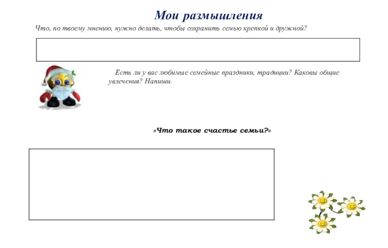 Есть ли у вас любимые семейные праздники, традиции? Каковы общие увлечения? Напиши.
