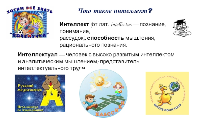Интеллект (от лат. intellectus — познание, понимание, рассудок), способность мышления, рационального познания.