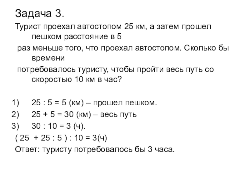 Турист проехал автостопом 25 км, а затем прошел пешком расстояние