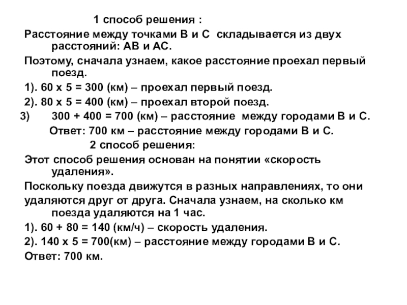 2). 140 х 5 = 700(км) – расстояние между городами В и С.