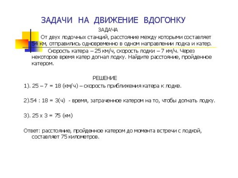 ( 74 – 10 х 5 ) : 3 = 8 (км/ч)