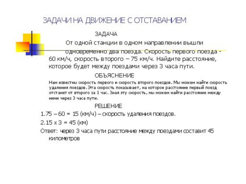 2). 210 : 3 = 70(км в ч) - скорость движения обоих поездов.