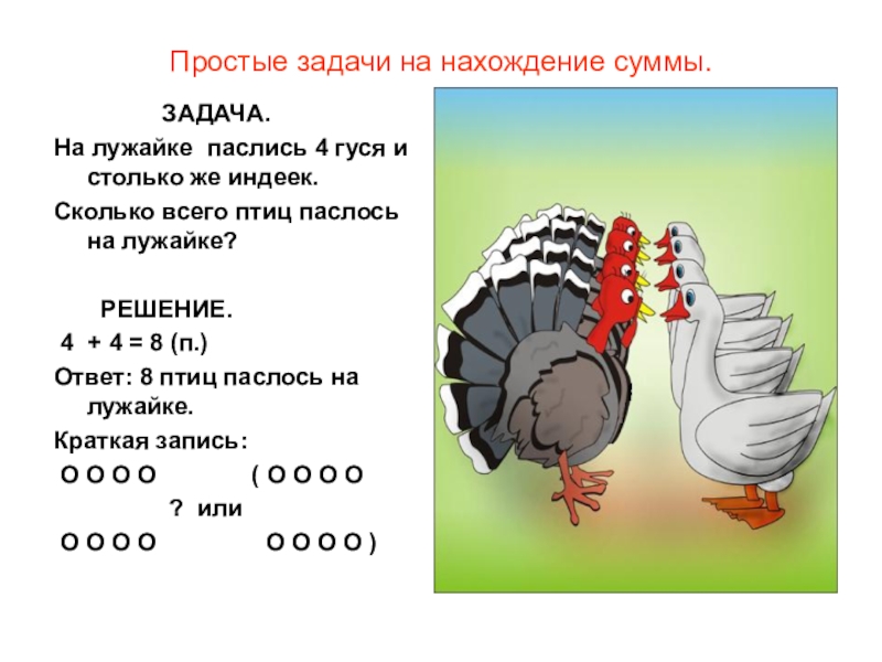 Слайд 4ПРОСТЫЕ ЗАДАЧИ НА УВЕЛИЧЕНИЕ И УМЕНЬШЕНИЕ ЧИСЛА НА НЕСКОЛЬКО ЕДИНИЦ.