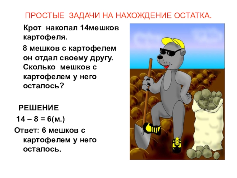 Слайд 6ПРОСТЫЕ ЗАДАЧИ НА НАХОЖДЕНИЕ ОСТАТКА.