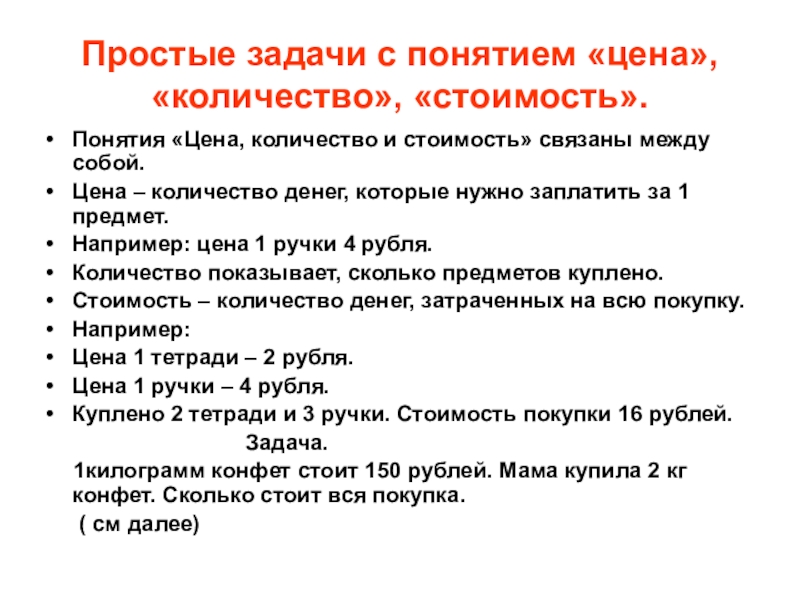 Слайд 9ПРОСТЫЕ ЗАДАЧИ НА УМНОЖЕНИЕ.