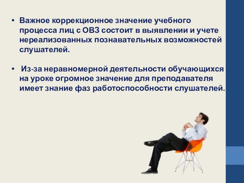 Важное коррекционное значение учебного процесса лиц с ОВЗ состоит в выявлении