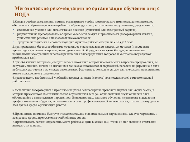 Слайд 5Методические рекомендации по организации обучения лиц с НОДА