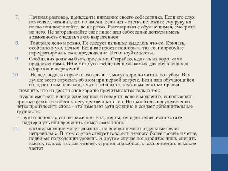 Слайд 7Начиная разговор, привлеките внимание своего собеседника. Если его слух позволяет, назовите