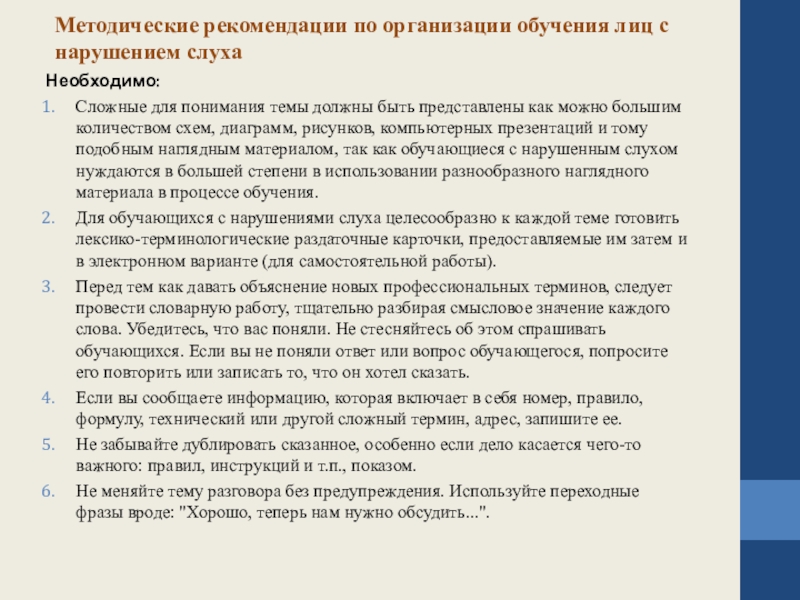 Методические рекомендации по организации обучения лиц с нарушением слуха