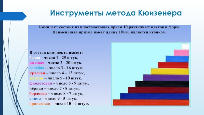 Палочки Кюизенера, в основном, предназначаются для занятий с детьми от 1