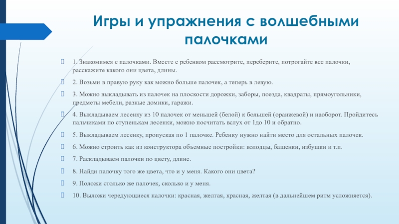 Слайд 10Игры и упражнения с волшебными палочками