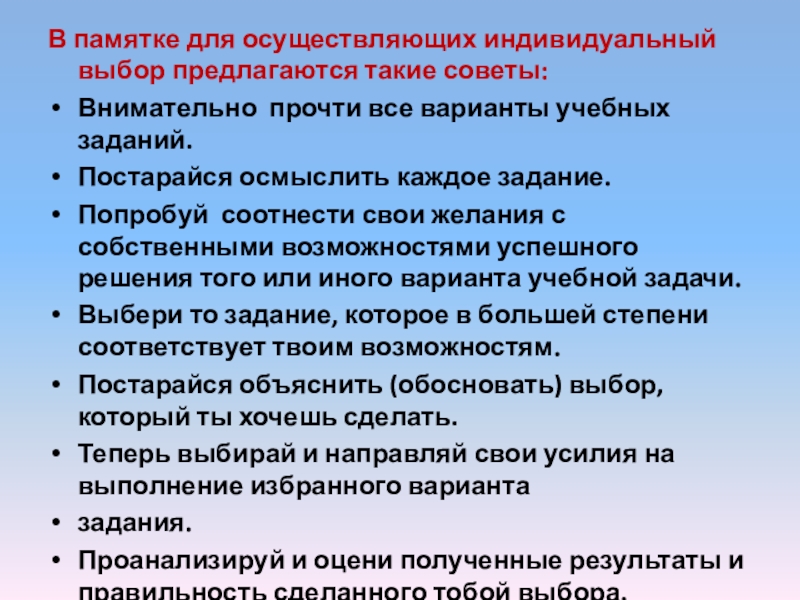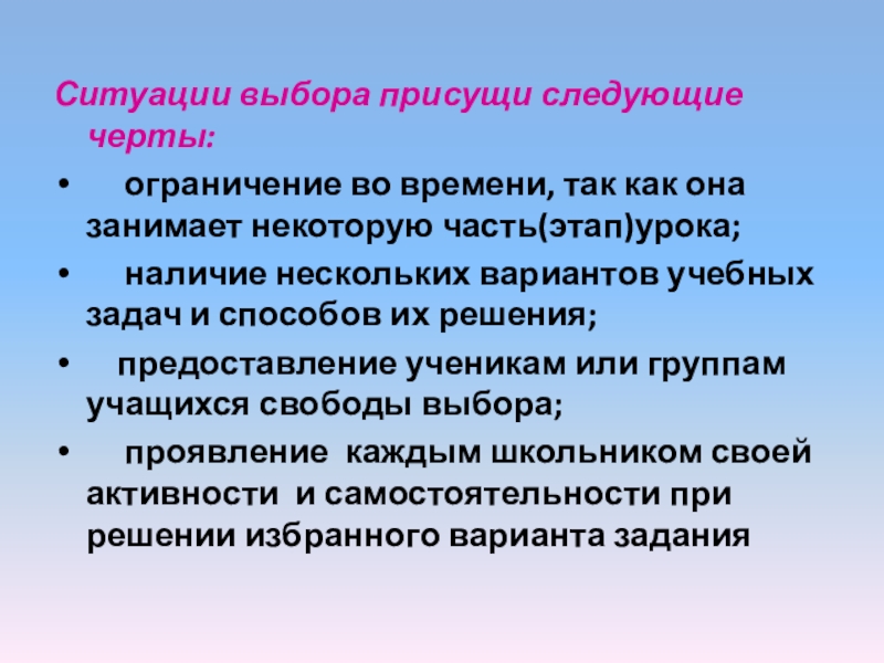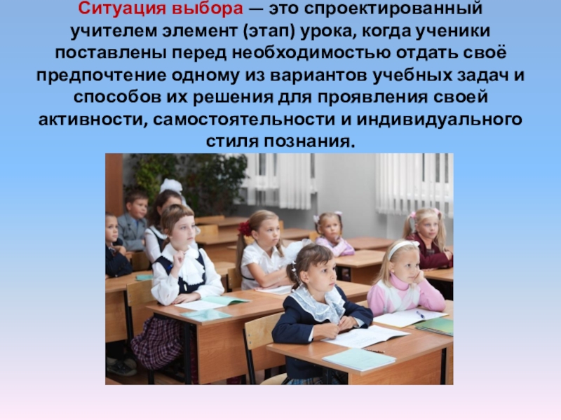 использования ситуаций свободного выбора учебных заданий на уроках математики в начальной школе.