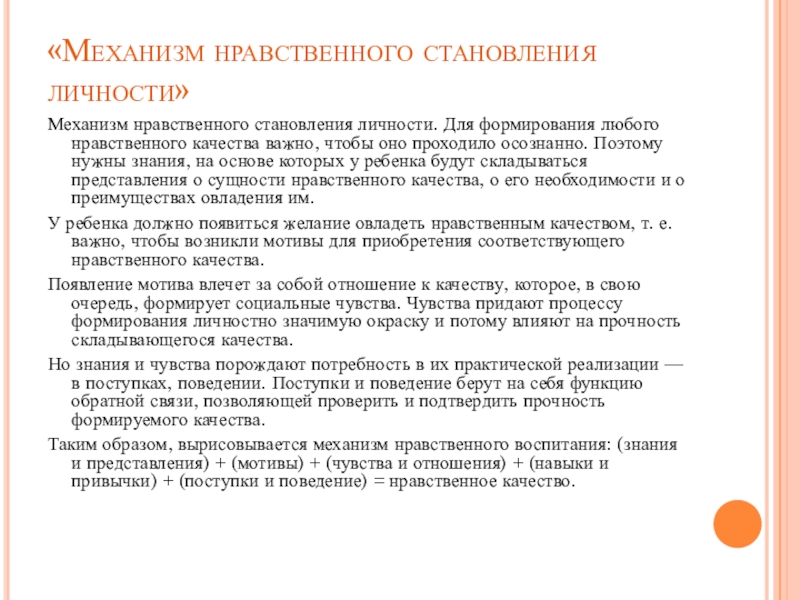 Механизм нравственного становления личности. Для формирования любого нравственного