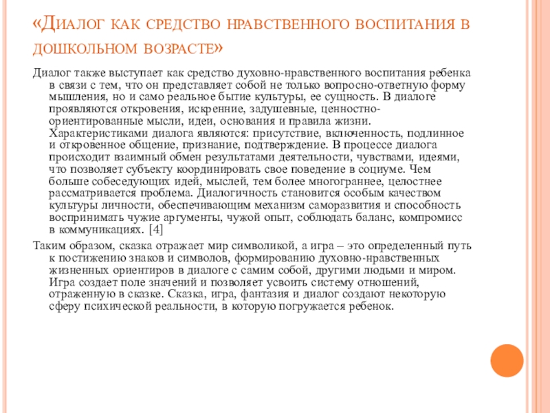 Слайд 15«Диалог как средство нравственного воспитания в дошкольном возрасте»