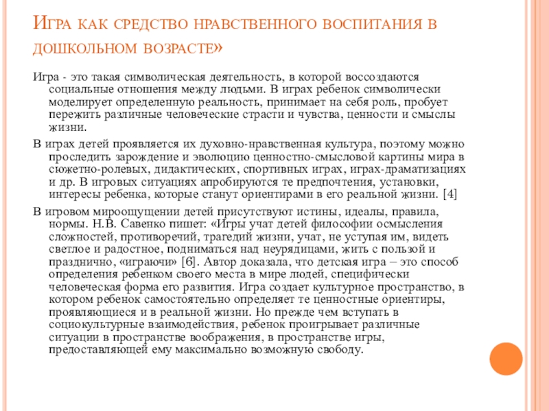 6. Савенко, Н.В. Игра в субкультуре детства : дисс. … к.ф.н. / Н.В. Савенко. – Р-н/Д, 2004. – 154 с.