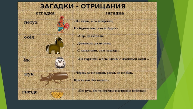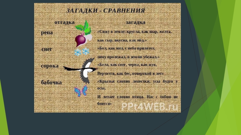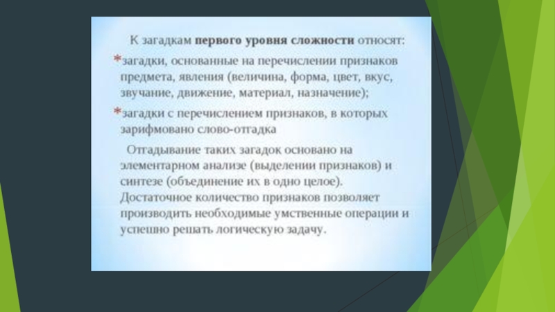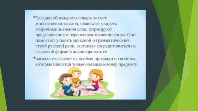 Презентация, доклад на тему Методика обучения разгадывания загадок