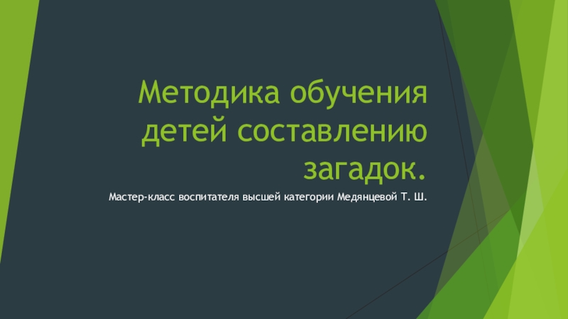 Методика обучения детей составлению загадок.Мастер-класс воспитателя высшей категории Медянцевой Т. Ш.
