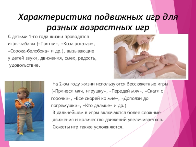 Слайд 5Характеристика подвижных игр для разных возрастных игр