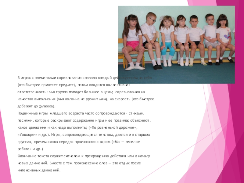 «Лошадки» и др.). Игры, сопровождающиеся текстом, даются и в старших