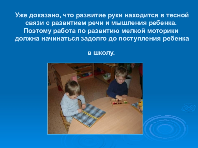 Слайд 2Уже доказано, что развитие руки находится в тесной связи с развитием
