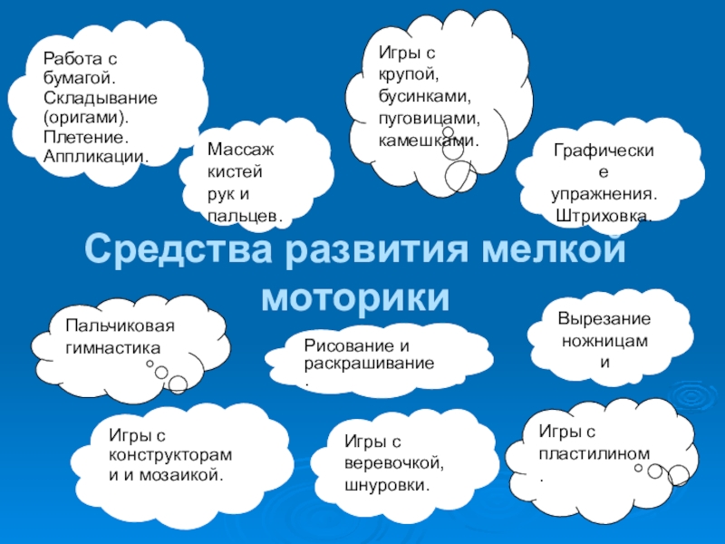 Слайд 4Средства развития мелкой моторики
