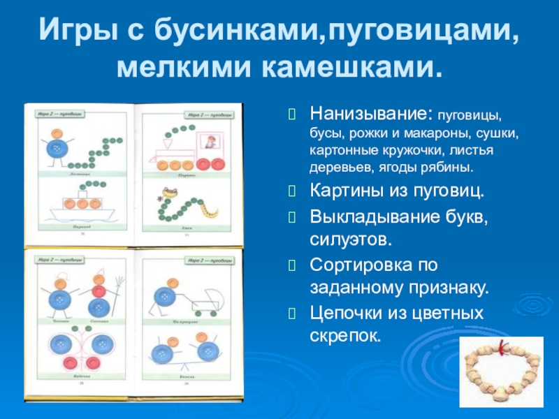 Слайд 21Игры с бусинками,пуговицами, мелкими камешками.