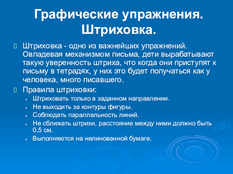 Штриховка - одно из важнейших упражнений. Овладевая механизмом письма,