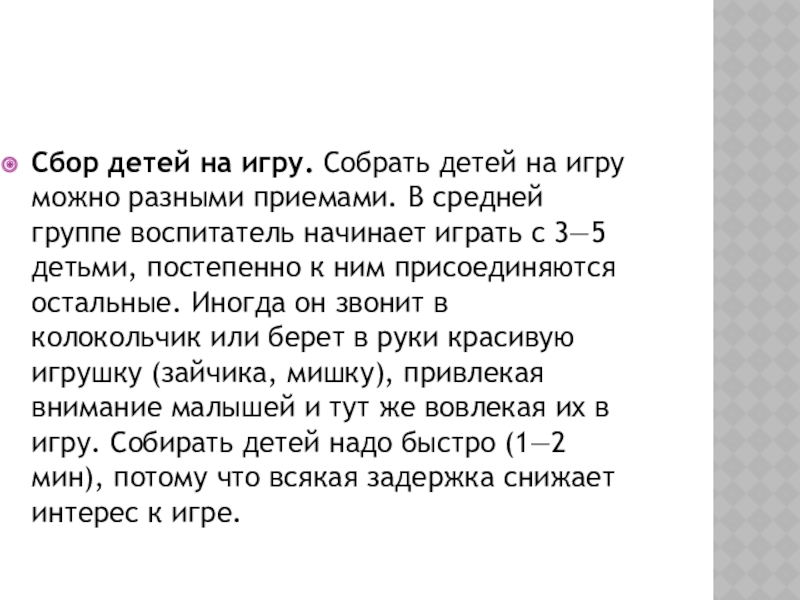 Слайд 5Сбор детей на игру. Собрать детей на игру можно разными приемами.