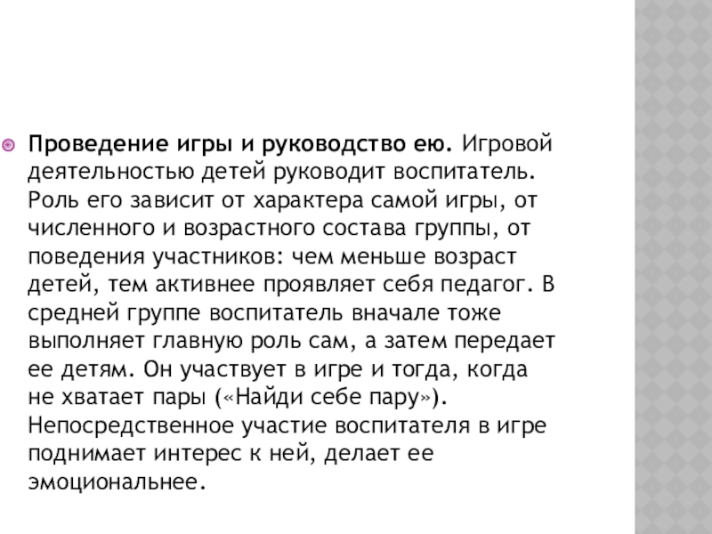 Слайд 10В играх с детьми среднего возраста воспитатель сначала берет на себя