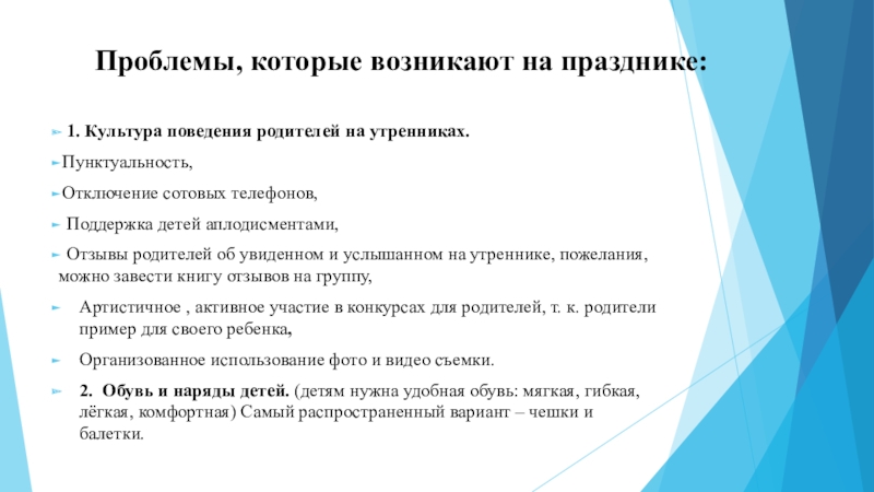 1. Культура поведения родителей на утренниках.