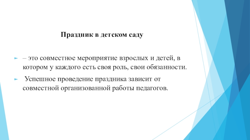 Успешное проведение праздника зависит от совместной организованной работы педагогов.