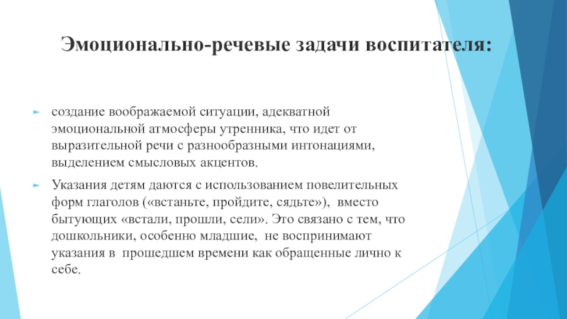 Слайд 8Эмоционально-речевые задачи воспитателя: