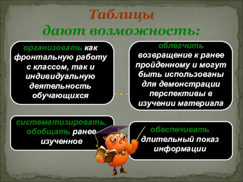 облегчить возвращение к ранее пройденному и могут быть использованы для демонстрации перспективы в изучении материала
