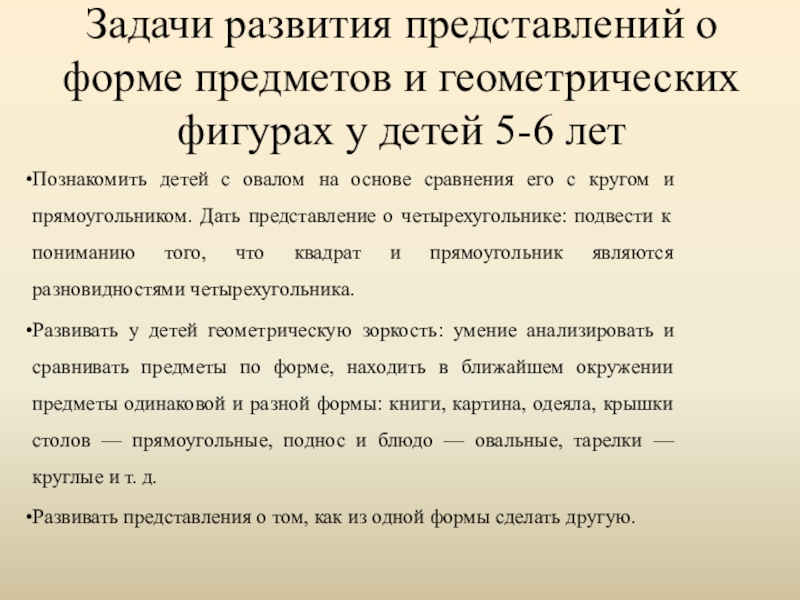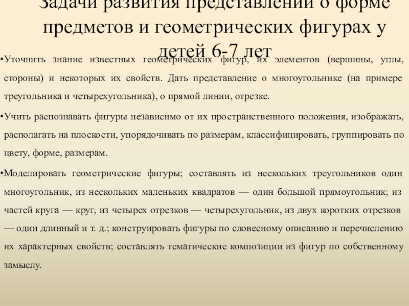 Задачи развития представлений о форме предметов и геометрических фигурах у детей 6-7 лет