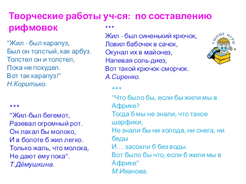 Это сайт презентаций, где можно хранить и обмениваться своими презентациями, докладами, проектами, шаблонами в формате PowerPoint с другими пользователями. Мы помогаем школьникам, студентам, учителям, преподавателям хранить и обмениваться учебными материалами.