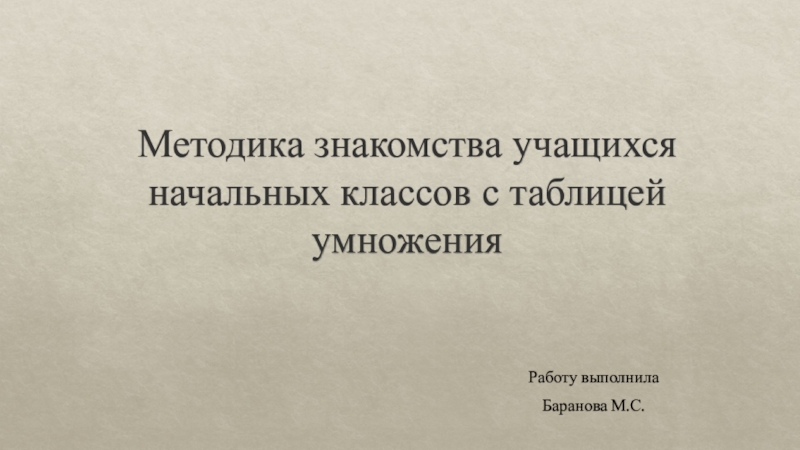 Методика знакомства учащихся начальных классов с таблицей умноженияРаботу выполнилаБаранова М.С.