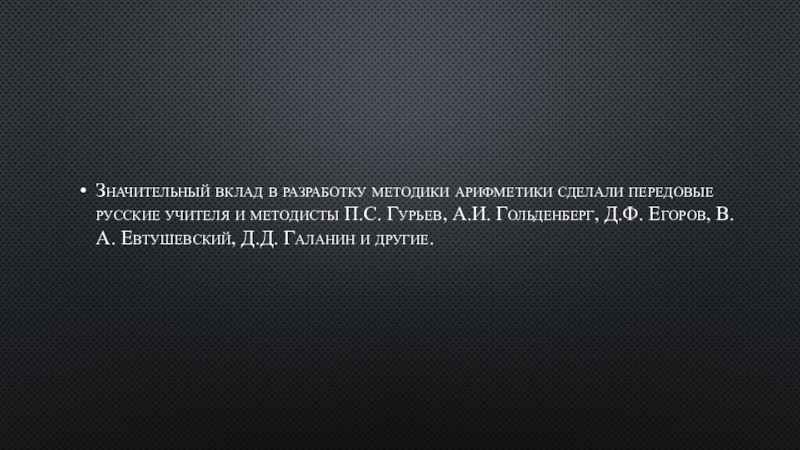 Слайд 9Значительный вклад в разработку методики арифметики сделали передовые русские учителя и